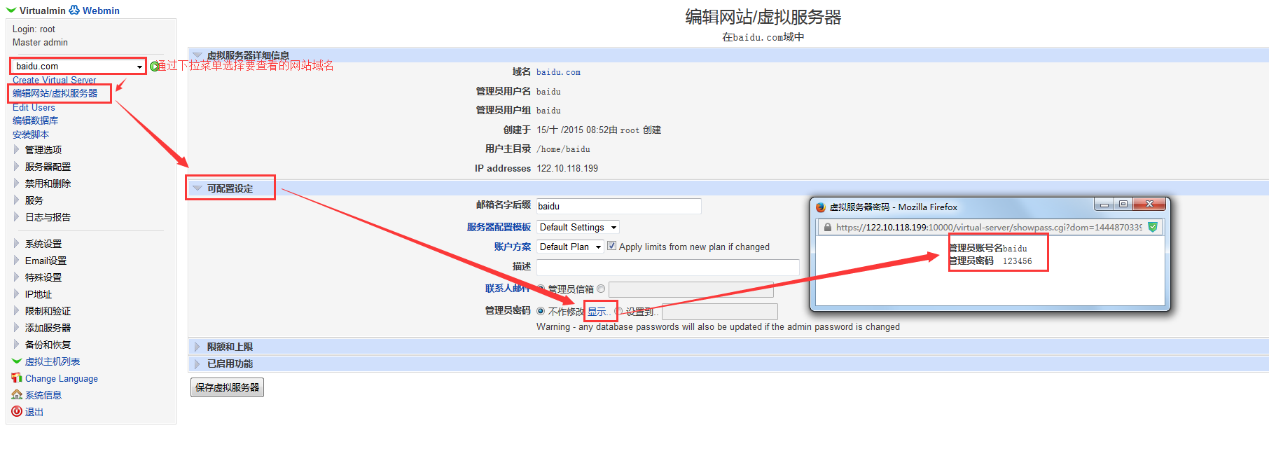 通過點(diǎn)擊編輯網(wǎng)站虛擬服務(wù)器查看創(chuàng)建的數(shù)據(jù)庫賬號(hào)密碼
