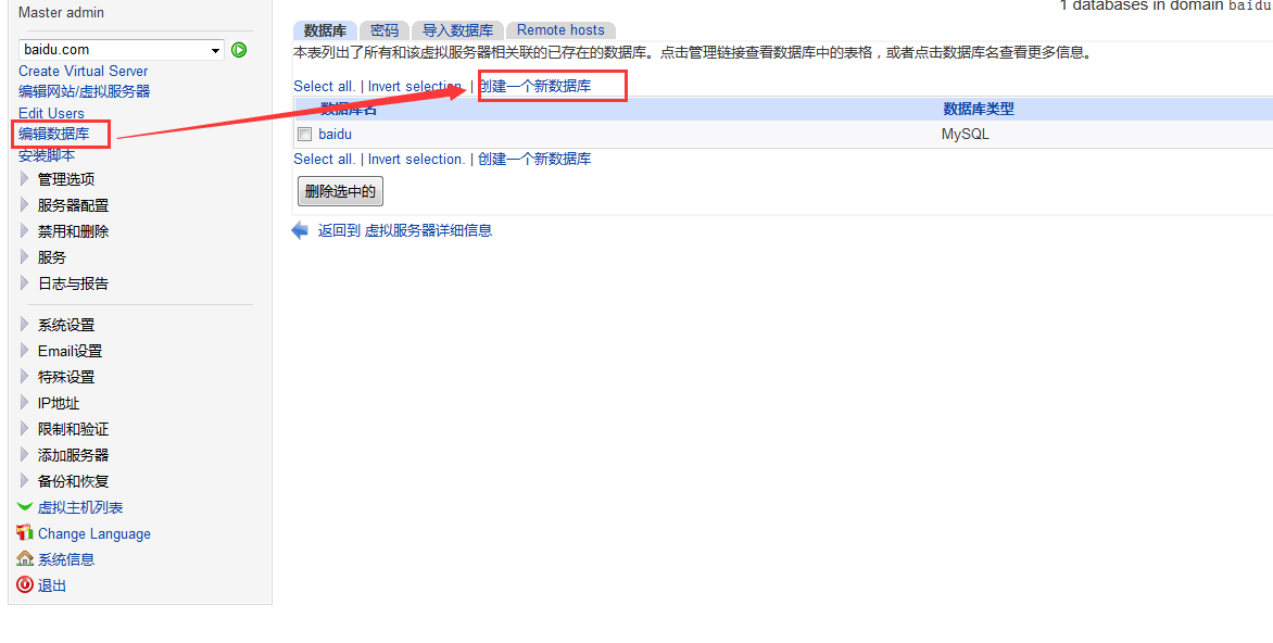 如何在Webmin面板上創(chuàng)建網(wǎng)站數(shù)據(jù)庫: