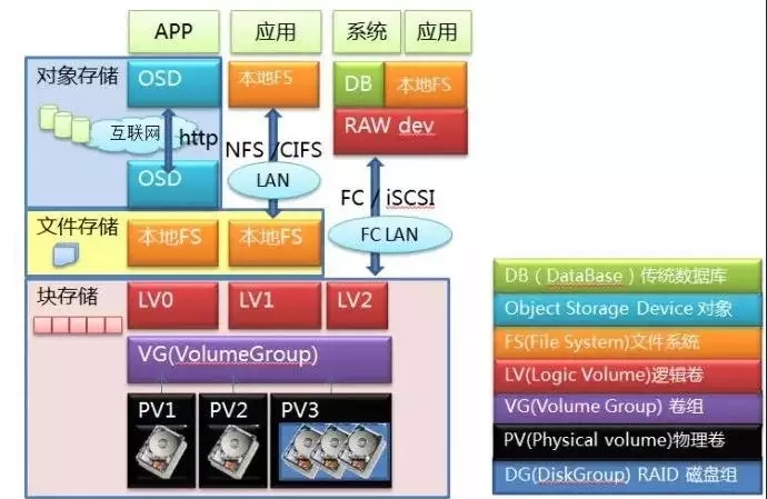 主流存儲類型分為三種:塊存儲、文件存儲以及對象存儲