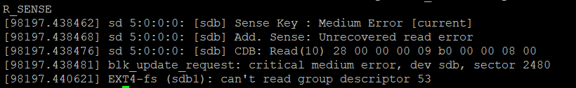 但是還是出現(xiàn)錯(cuò)誤,那接下來(lái)我就輸入fsck -n /dev/sdb1檢查硬盤錯(cuò)誤情況