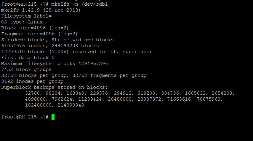 于是就輸入下面命令mke2fs -n /dev/sdb1