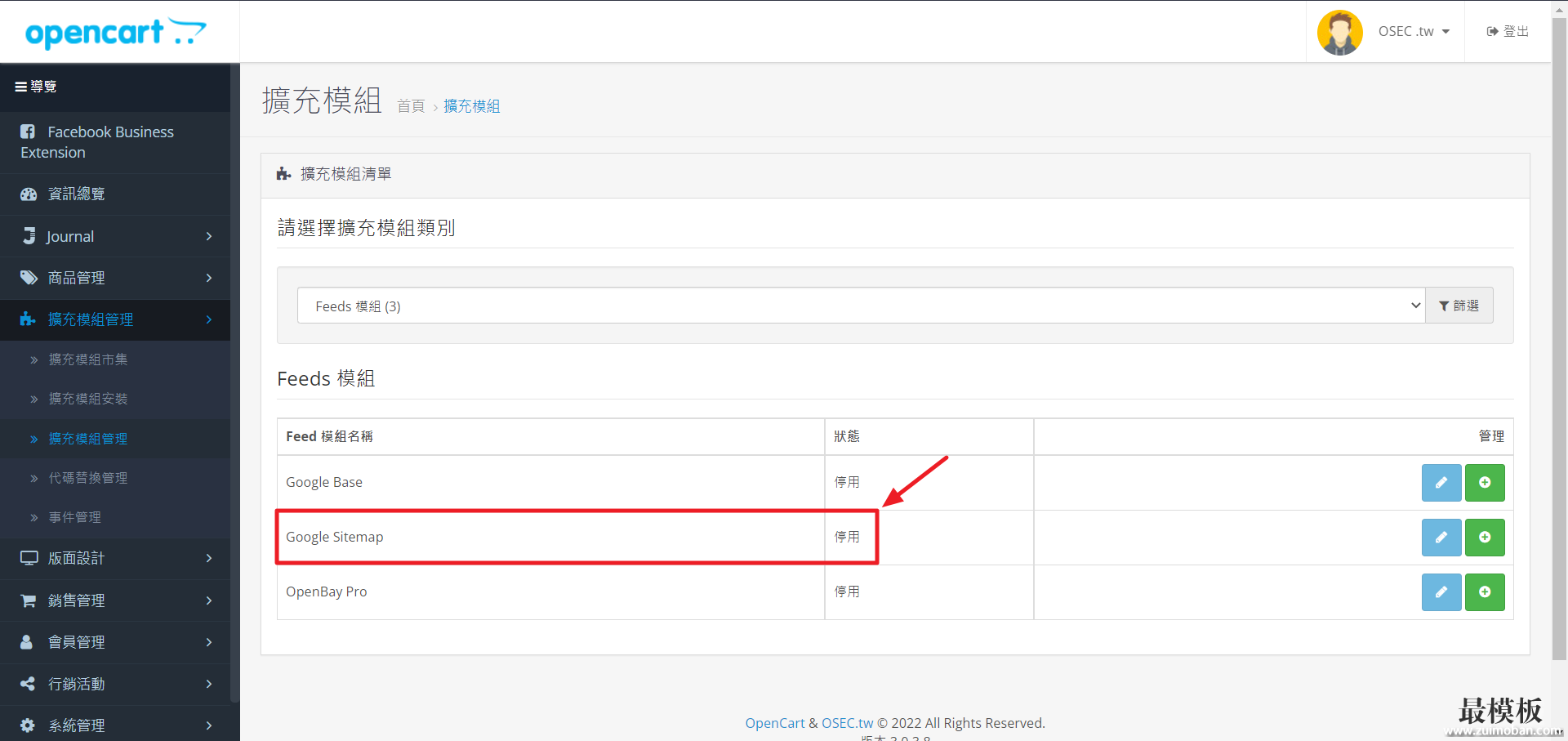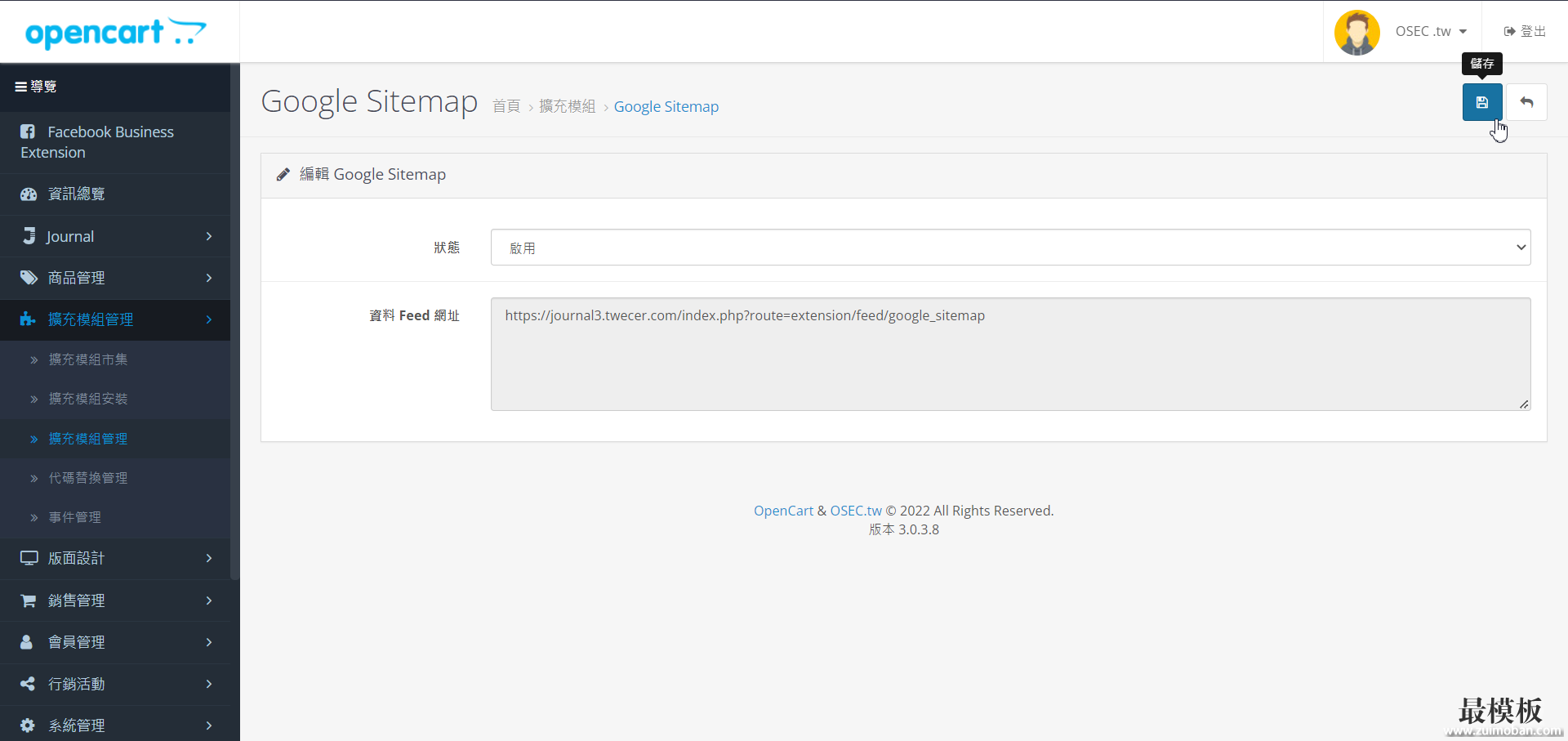 OpenCart 內(nèi)建產(chǎn)生Sitemap.xml feed 的功能,但Sitemap 模塊預(yù)設(shè)并沒有安裝啟用,所以要提交Sitemap 之前,必須先安裝啟用Sitemap 模塊。