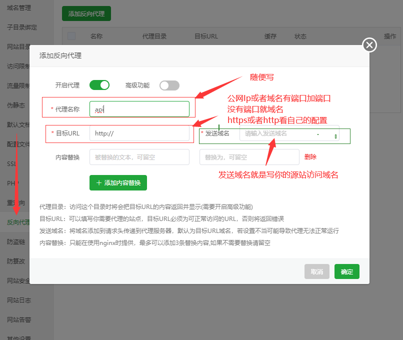 如果你想用你的站代理google或者baidu,發(fā)送域名你只要寫google或者百度就可以了