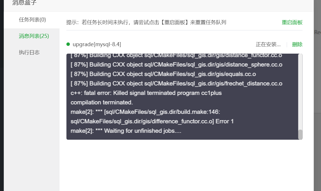 更新數(shù)據(jù)庫(kù)MySQL8.4.0到8.4.5版本卡死。